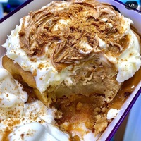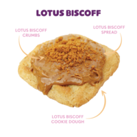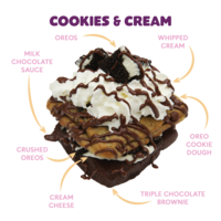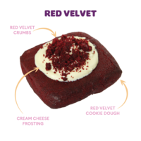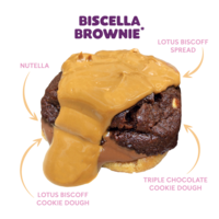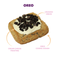 Double layer of cookie dough with a double scoop of fresh soft serverd ice cream